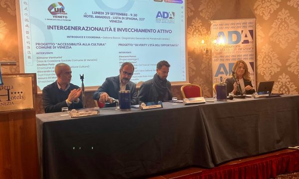 Intergenerazionalità e invecchiamento attivo: si è svolto ieri, all’Hotel Amadeus di Venezia, il convegno “Intergenerazionalità e invecchiamento attivo”, promosso da UIL Pensionati Veneto e Ada Veneto ODV nell’ambito dei progetti Accessibilità alla cultura del Comune di Venezia e Silverity: l’età dell’opportunità, sostenuto dalla Regione Veneto e che risponde all’Avviso Promozione e Valorizzazione dell’Invecchiamento attivo ART.4