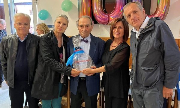 Cento anni di Primo: una giornata di festa nella frazione di Sasso di Serra San Quirico, dove la UIL Pensionati Marche con la Segretaria generale Marina Marozzi e il Coordinatore dell’Area di Jesi e Fabriano Ugo Grilli ha festeggiato il meraviglioso traguardo dei cento anni dell’iscritto Primo Paglioni. “Il signor Primo ci ha riservato un’accoglienza