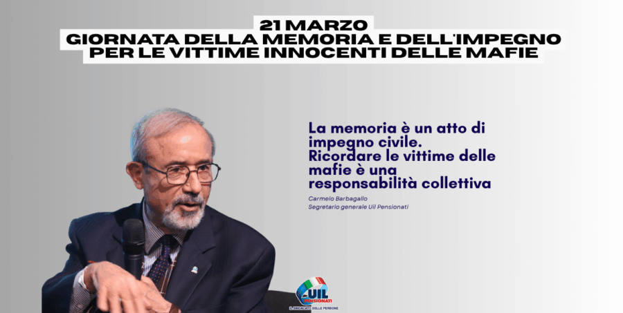 21 Marzo Giornata della Memoria e dell’impegno in ricordo delle vittime innocenti delle mafie “La memoria è uno strumento di impegno civile. Ricordare le vittime innocenti delle mafie significa rinnovare ogni giorno la nostra responsabilità collettiva nel contrasto a ogni forma di violenza e illegalità.”