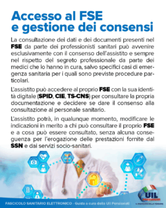 L’assistito può accedere al proprio FSE con la sua identità digitale (SPID, CIE, TS-CNS) per consultare la propria documentazione e decidere se dare il consenso alla consultazione al personale sanitario.