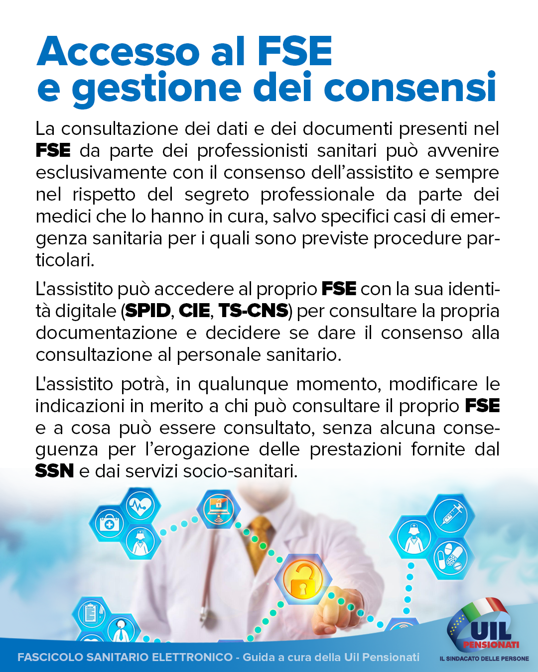 La consultazione dei dati e dei documenti presenti nel FSE da parte dei professionisti sanitari può avvenire esclusivamente con il consenso dell’assistito e sempre nel rispetto del segreto professionale da parte dei medici che lo hanno in cura, salvo specifici casi di emergenza sanitaria per i quali sono previste procedure particolari.