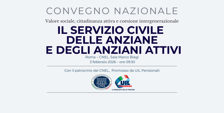 Il servizio civile delle anziane e degli anziani attivi. Martedì 3 febbraio 2026, alle ore 09.30, a Roma, presso il CNEL, nella Sala Marco Biagi, si terrà il Convegno nazionale ‘Il Servizio Civile delle Anziane e degli Anziani Attivi’.
