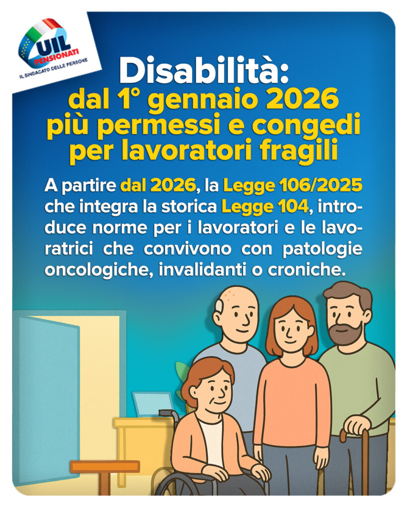 A partire dal 2026, la Legge 106/2025, che integra la storica Legge 104, introduce norme per i lavoratori e le lavoratrici che convivono con patologie oncologiche, invalidanti o croniche.