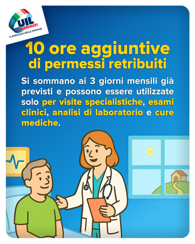 Si sommano ai 3 giorni mensili già previsti e possono essere utilizzate solo per visite specialistiche, esami clinici, analisi di laboratorio e cure mediche.