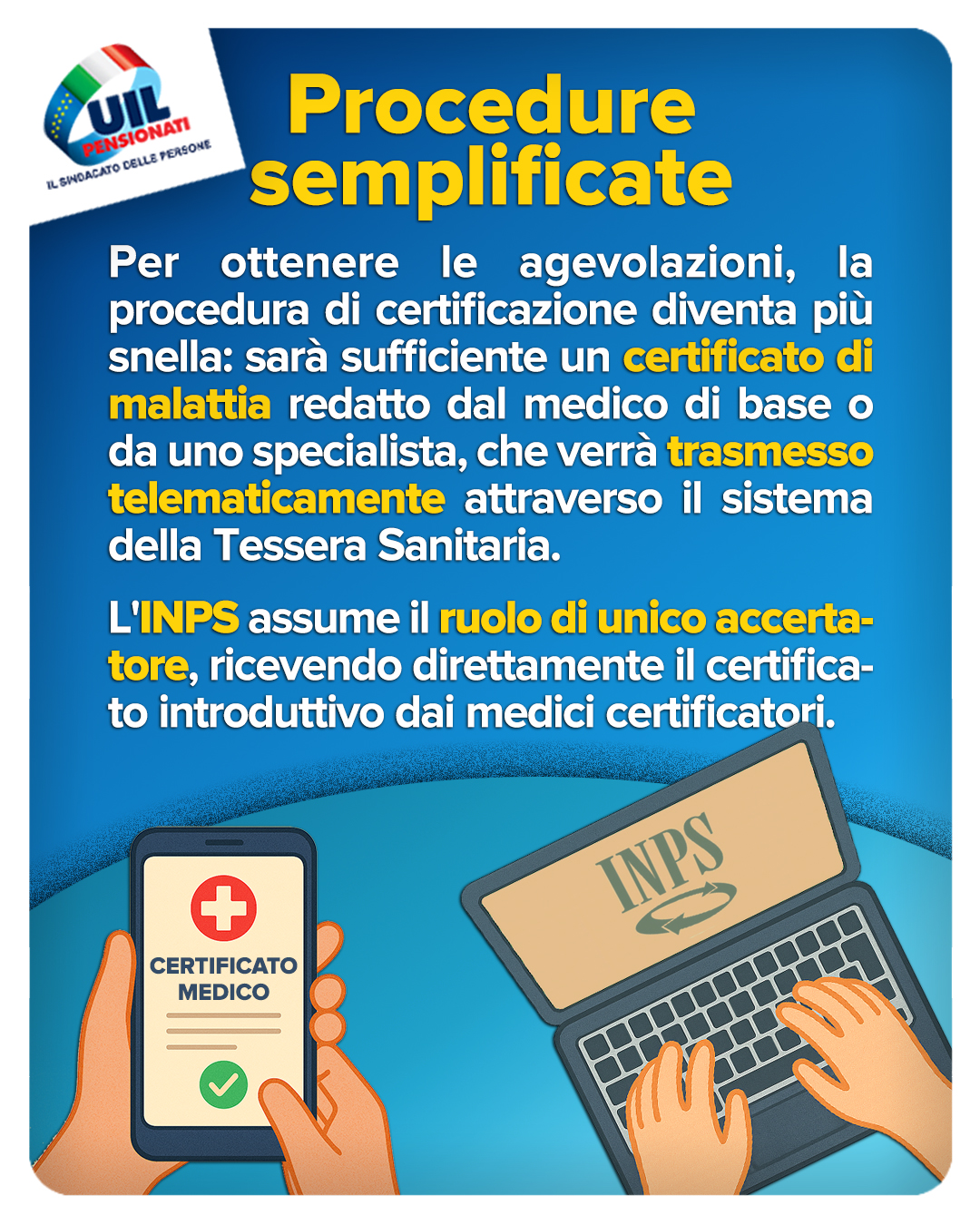 L’INPS assume il ruolo di unico accertatore, ricevendo direttamente il certificato introduttivo dai medici certificatori.