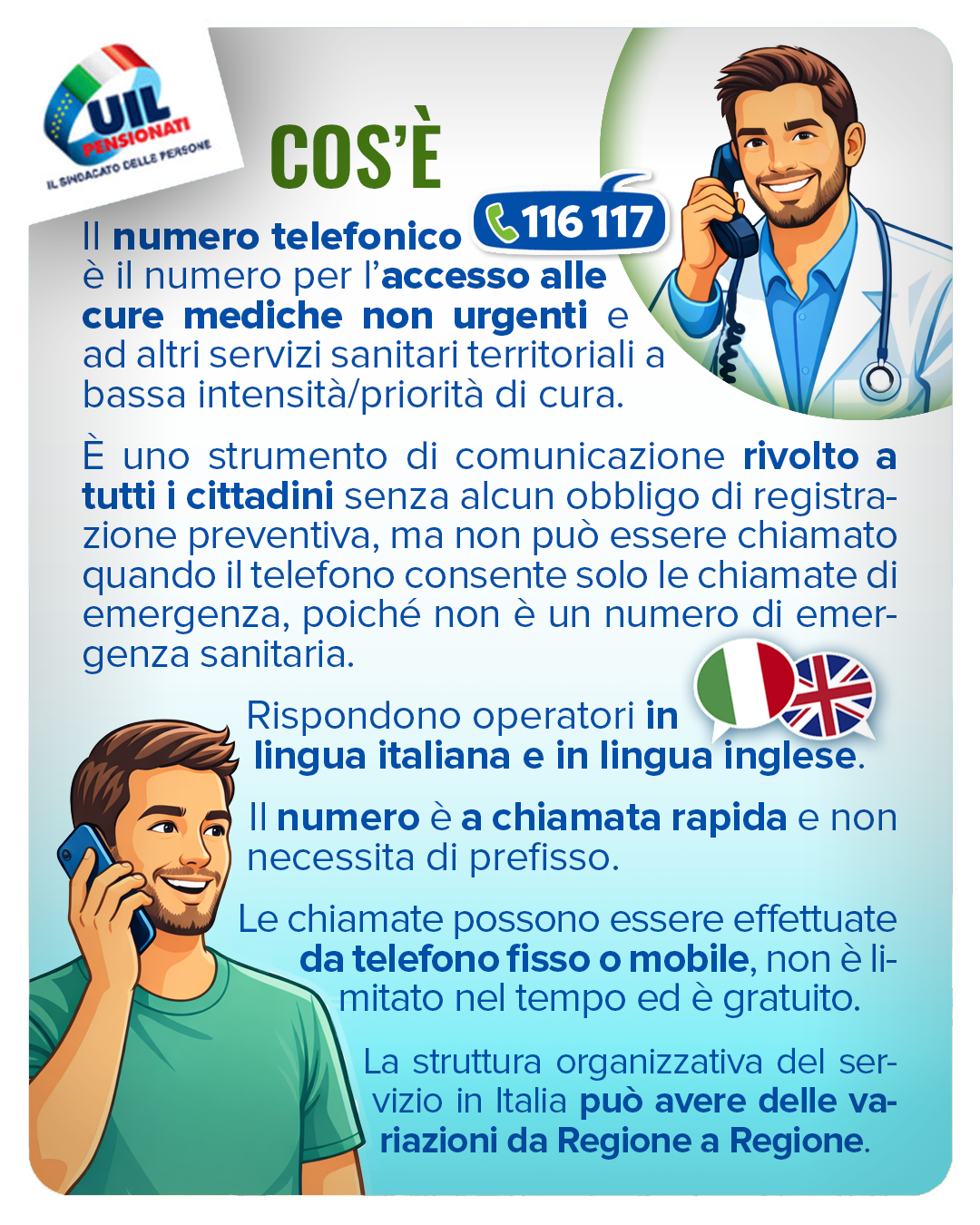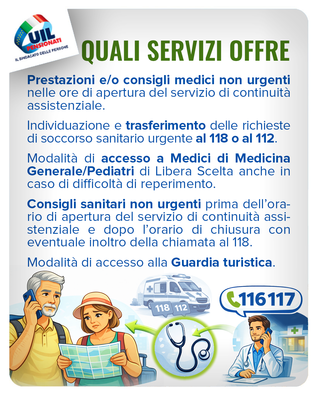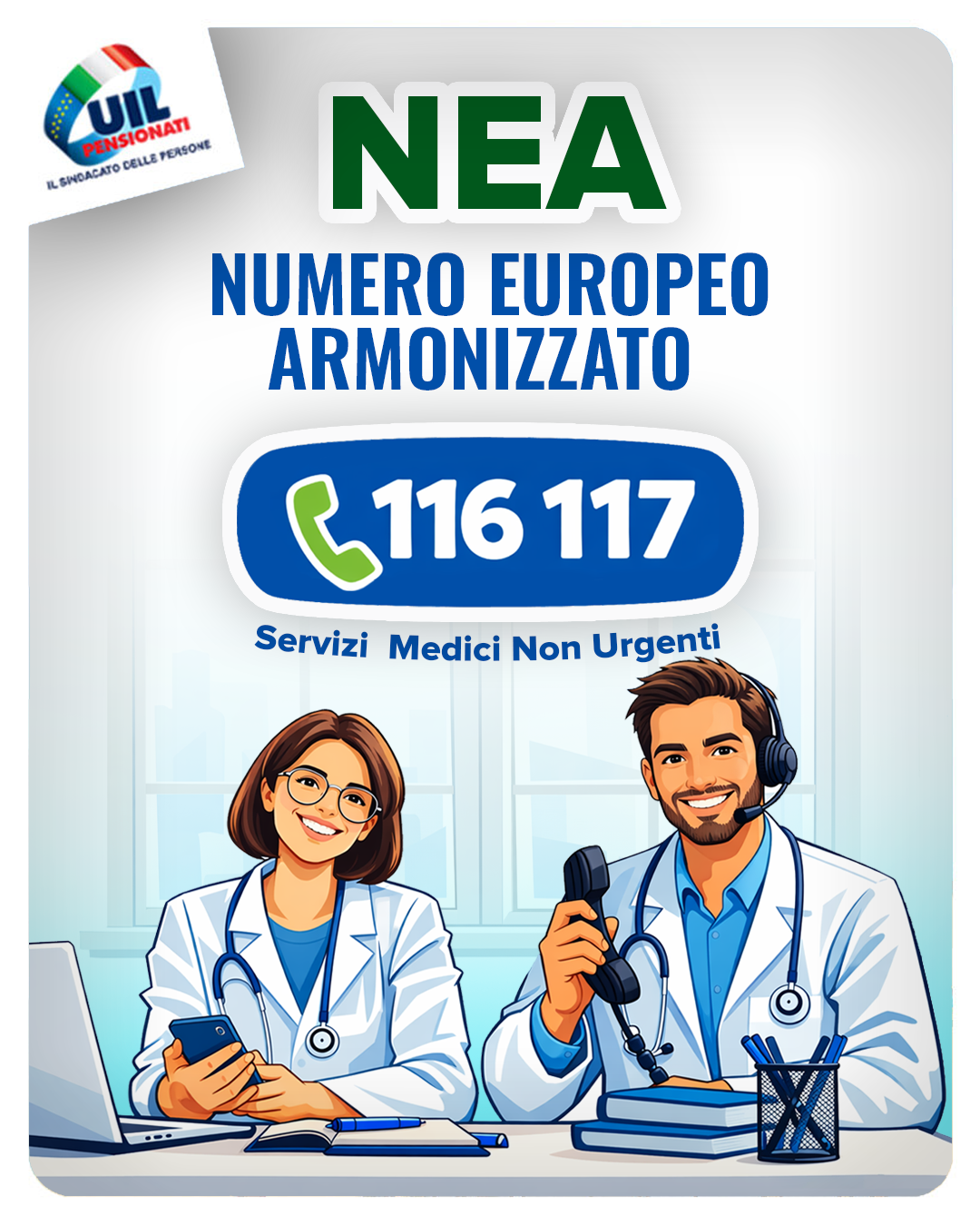 NEA: Il numero telefonico 116 117 è il numero per l’accesso alle cure mediche non urgenti e ad altri servizi sanitari territoriali a bassa intensità/priorità di cura.
