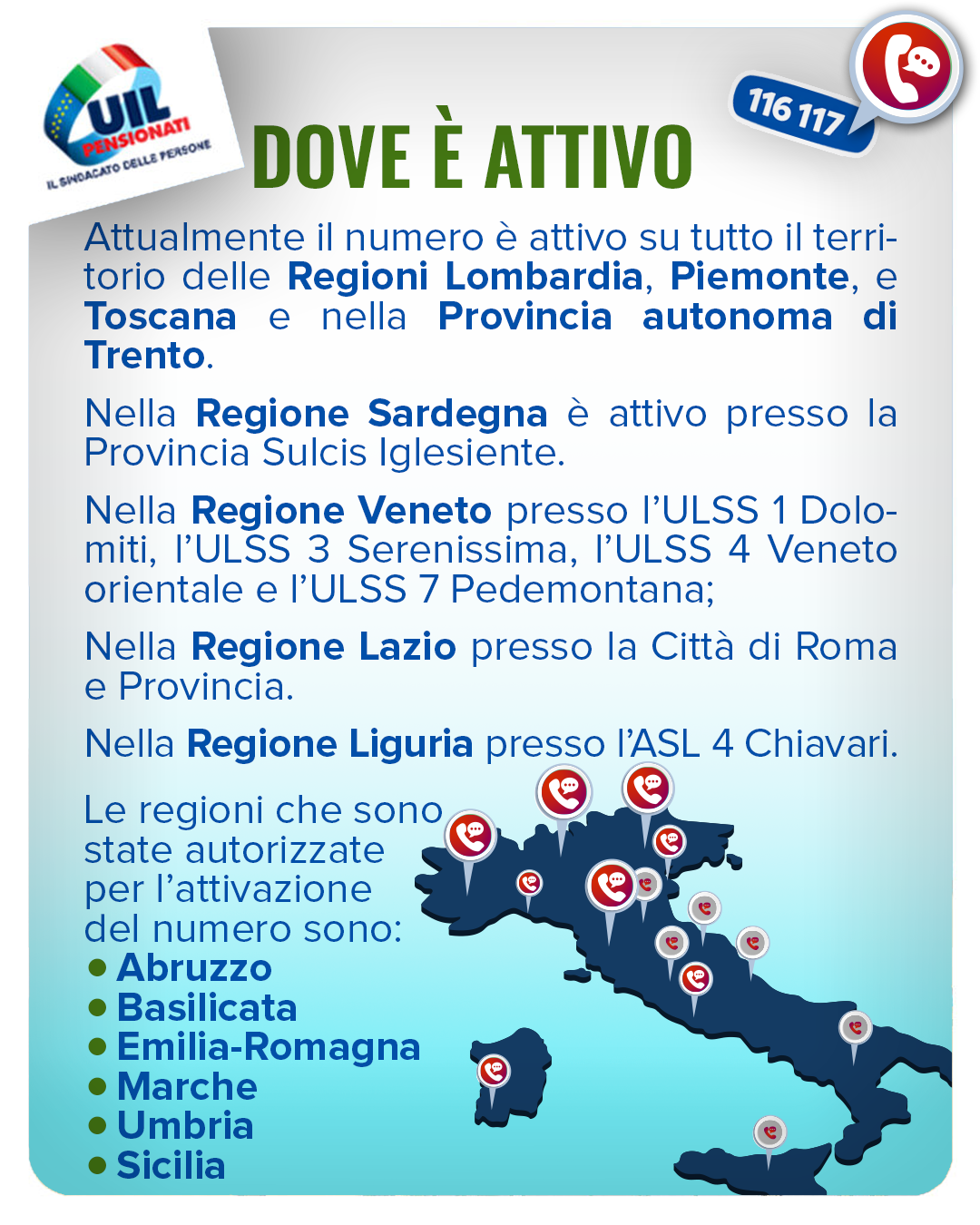 Le regioni che sono state autorizzate per l’attivazione del numero sono: