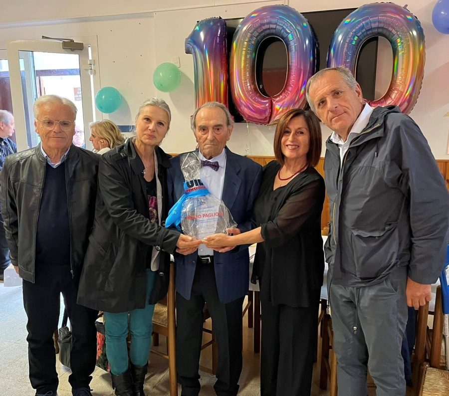 Cento anni di Primo: una giornata di festa nella frazione di Sasso di Serra San Quirico, dove la UIL Pensionati Marche con la Segretaria generale Marina Marozzi e il Coordinatore dell’Area di Jesi e Fabriano Ugo Grilli ha festeggiato il meraviglioso traguardo dei cento anni dell’iscritto Primo Paglioni.